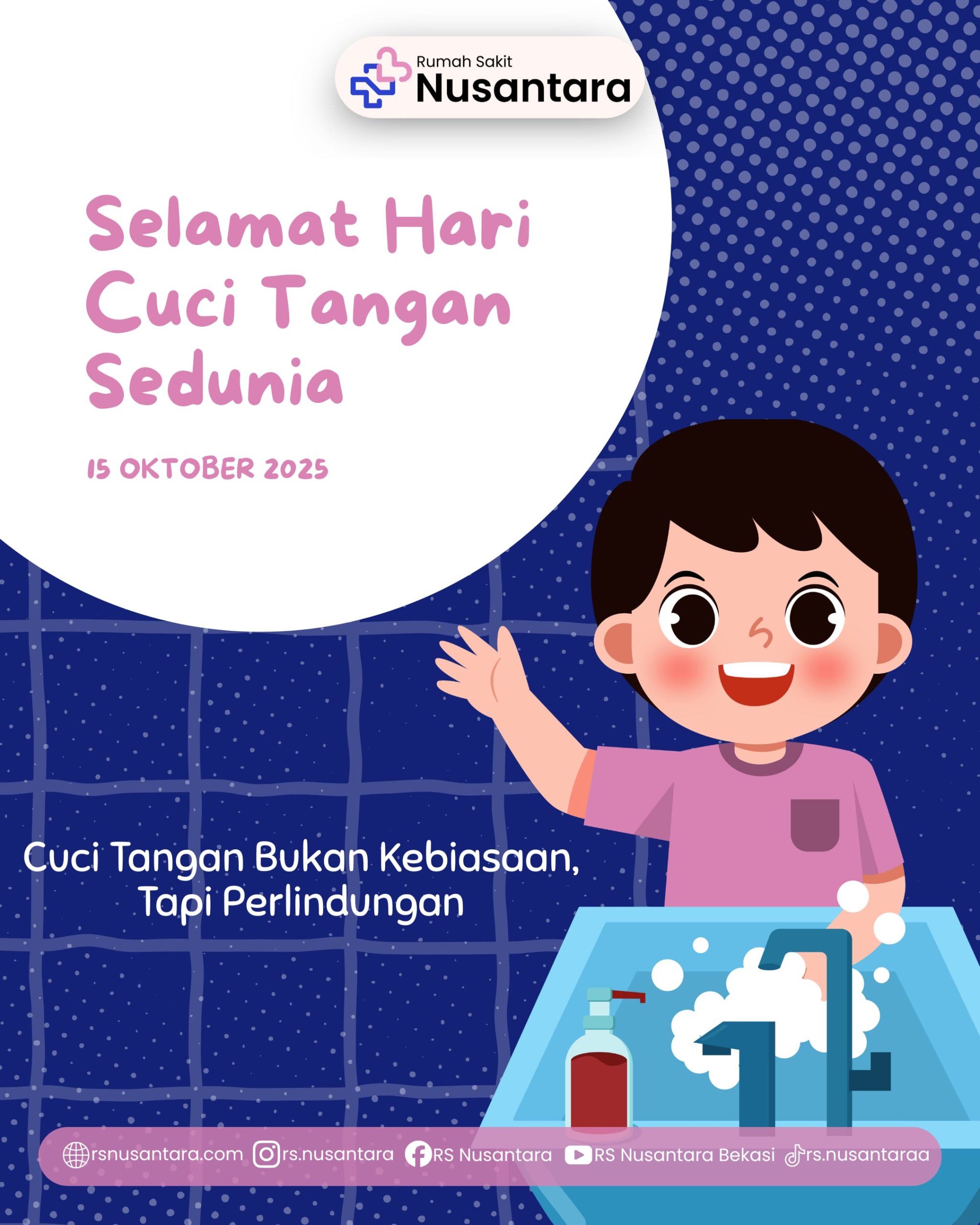 Rumah Sakit Nusantara mengucapkan Selamat Hari Cuci Tangan Sedunia yang diperingati setiap tanggal 15 Oktober. Momentum ini menjadi pengingat pentingnya menjaga kebersihan tangan sebagai bentuk perlindungan diri dan orang-orang di sekitar kita.